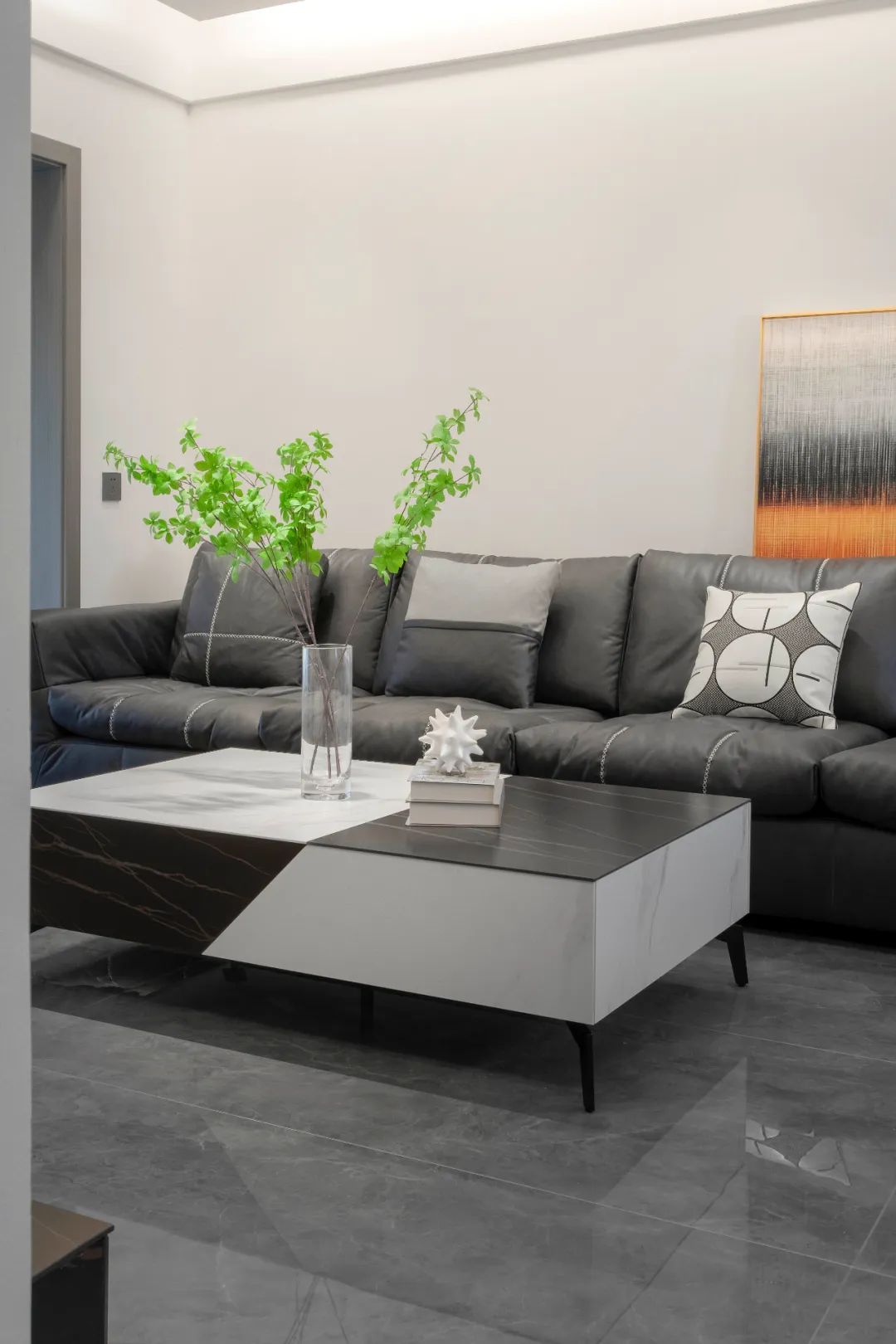 業(yè)主喜歡簡(jiǎn)單,客廳空間便以白色藝術(shù)漆鋪就樸實(shí)而有質(zhì)感的底色。